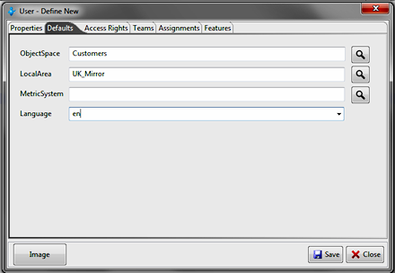 - the language and the localarea (only for team) -